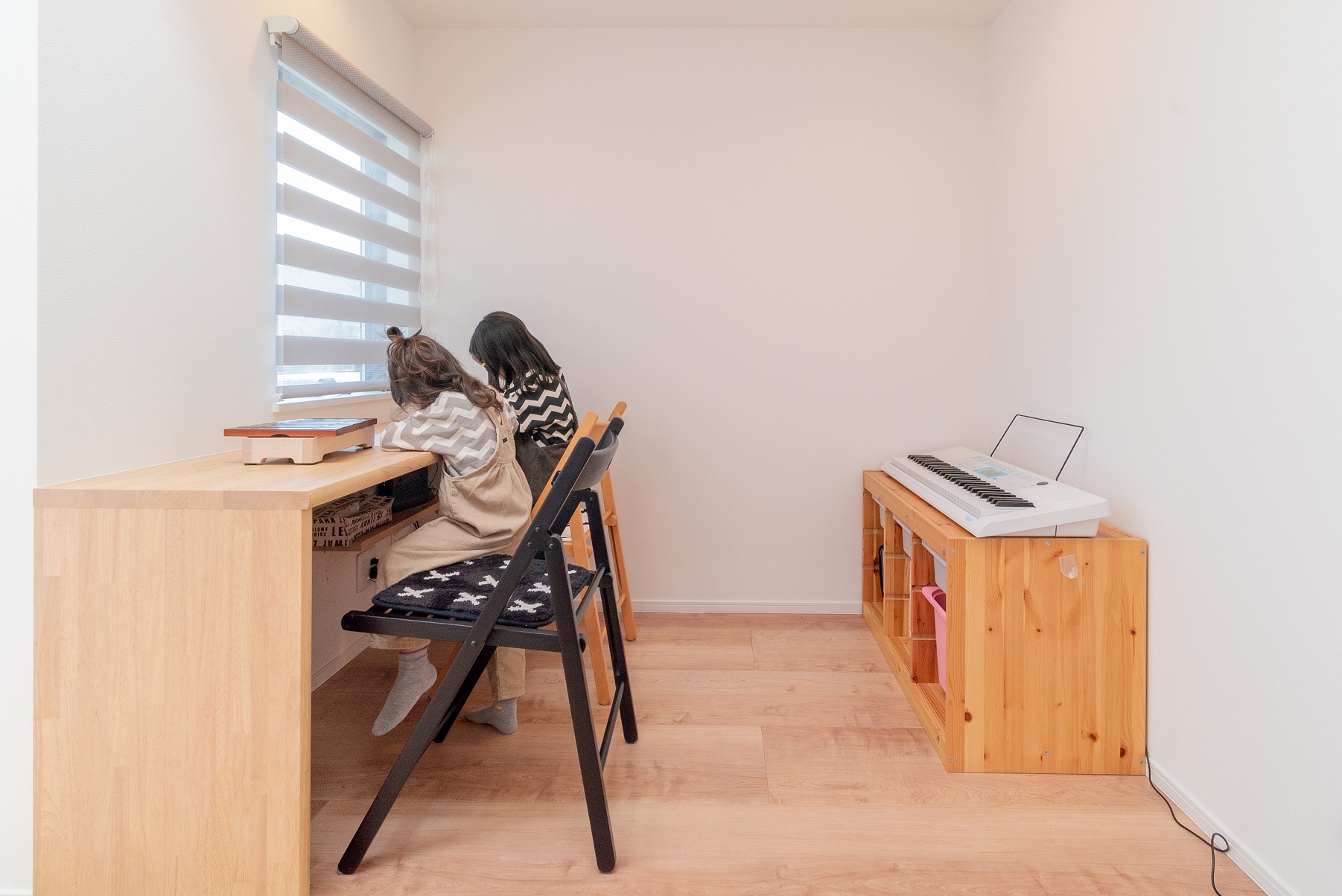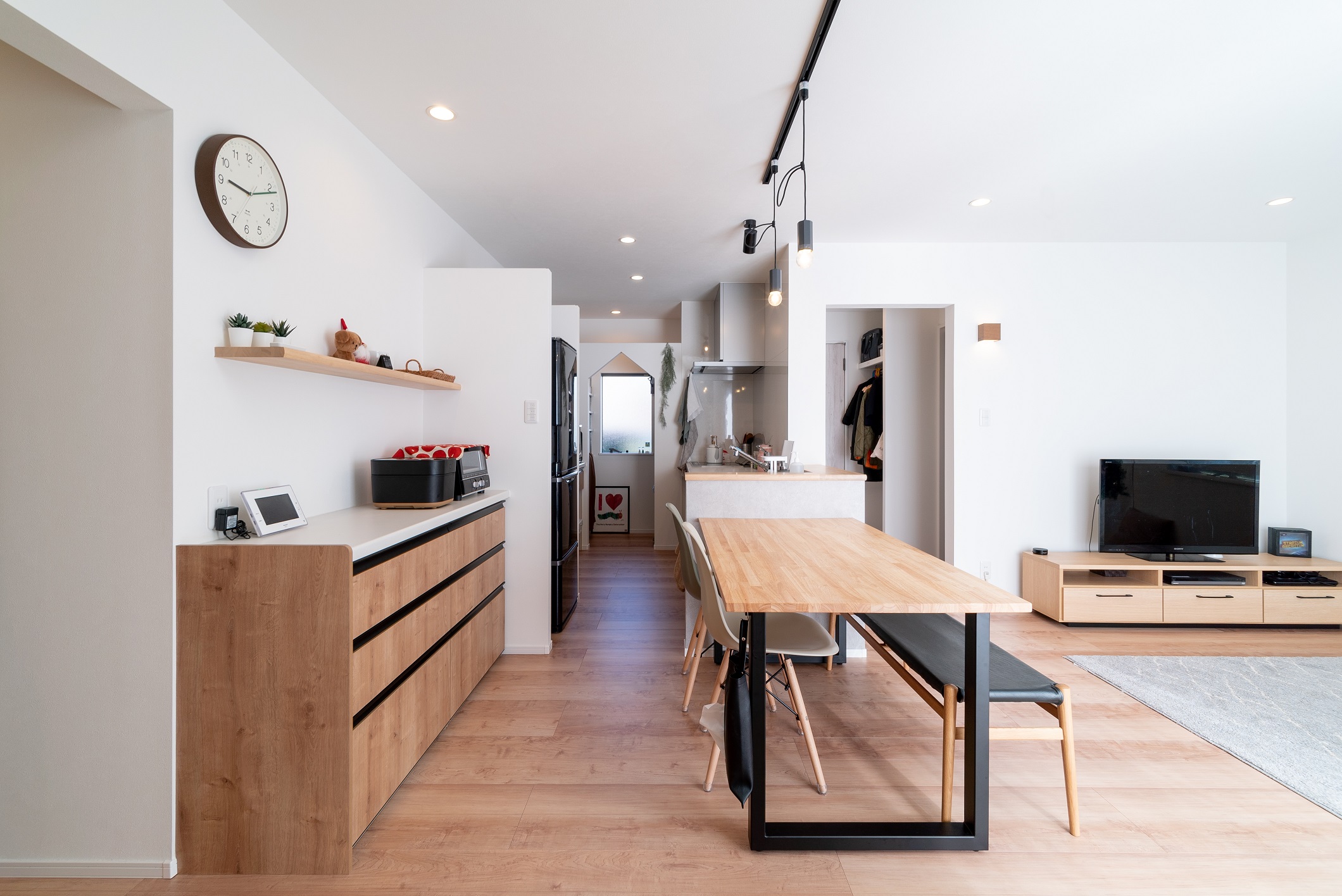 キッチンと同じラインに多目的スペースを設けることにより、家事をしながらお子様の様子を伺うことができます。また、1階のフロアを結ぶ便利なループ動線の中心にありお部屋全体を見渡すことができる”見守りキッチン”です。